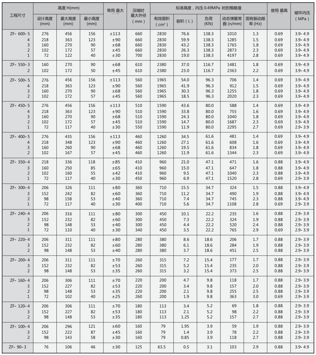ZF型自封式空氣彈簧(沖床設備專用)介紹: